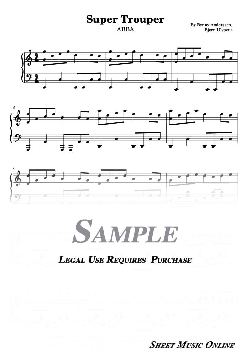 Play ABBA’s uplifting 1980 disco-pop classic “Super Trouper” arranged for solo piano. Set in C major, this vibrant and melodic hit captures the group’s signature harmonies and nostalgic energy in a rich piano arrangement. Perfect for intermediate pianists who enjoy performing timeless pop anthems. Includes 9 pages in high-quality PDF format for instant digital download.