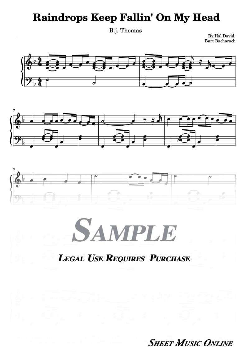 🎵 B.J. Thomas – Raindrops Keep Fallin’ On My Head (Piano Sheet Music)