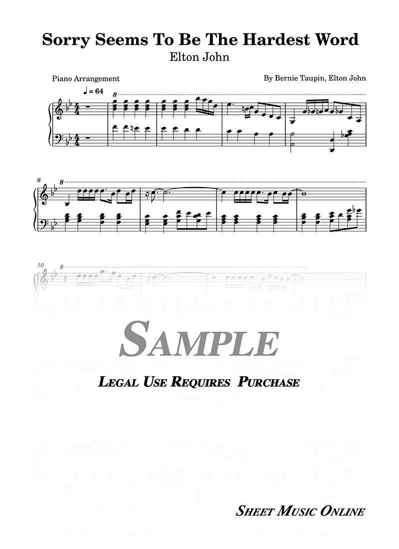 Elton John – Sorry Seems To Be The Hardest Word Sheet Music
